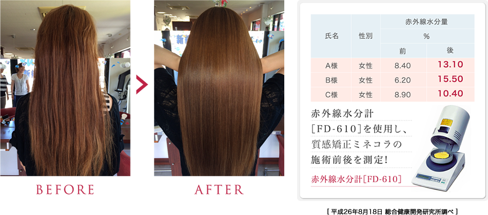 ミネコラの施術動画です。艶髪になっていく行程を是非ご覧下さい。