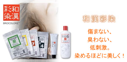 和漢彩染とは、日本古来伝統染毛技法と近代科学染毛技法を融合させた、オリエンタルリズム(東洋趣味)を追求した理想的な女性像を創り出す、和漢植物エキス(天然保湿成分)成分のヘアカラーテクニカルシステムです。